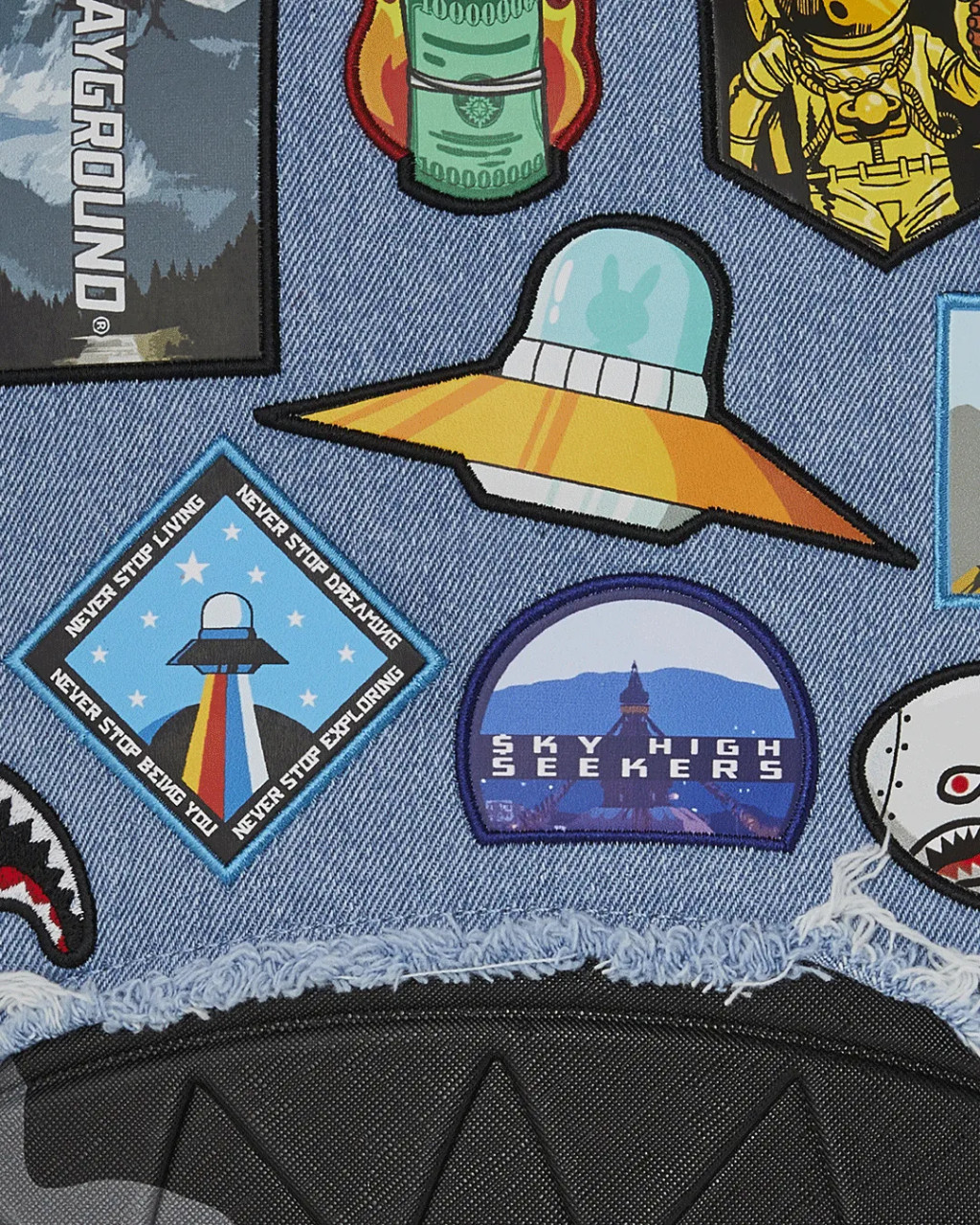 Sprayground Denim Tear 3 Am Patches Backpack Blue ONE